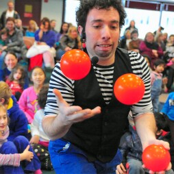 This is a two-part program that includes a comedy juggling and variety show and then an interactive workshop that gets all kids involved with trying new skills.