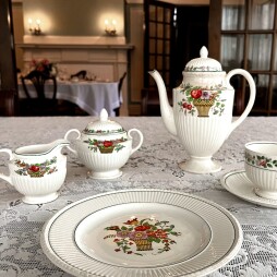 Tea service seating in the living room and breakfast rooms at 1:30 pm
