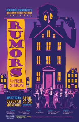 As their tenth wedding anniversary party commences, Charlie Brock, Deputy Mayor of New York City, seems to have just shot himself through the ear. Now he lies bleeding in the master bedroom and his wife Myra is nowhere in sight. The first guests, lawyer Ken Gorman and his wife Chris, scramble to get “the story” straight before the other guests arrive. As the confusions, cover-ups, miscommunications, and rumors mount, the evening spirals into a classic farce. Neil Simon is the renowned master of American comedy. In Rumors he shows how even the rich and famous can be driven to ridiculous behavior when confronted with a possible scandal or even the “rumor” of a scandal. “Rumors” is presented by arrangement with Concord Theatricals on behalf of Samuel French, Inc. www.concordtheatricals.com