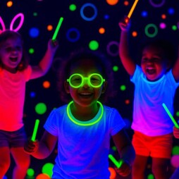 This colorful dayglow party is designed for parents and children to dance and explore rhythm together in a safe, kid-friendly environment. We’ll supply glow sticks, bubble machines, non-strobe-effect lights, and age-appropriate music. You bring the tiny dancers and energy! Need a break from the music and lights? You’ll find a space across the hall in our Zimmerman Meeting Room to sit and “chill”, color a picture, and reenergize to keep dancing.