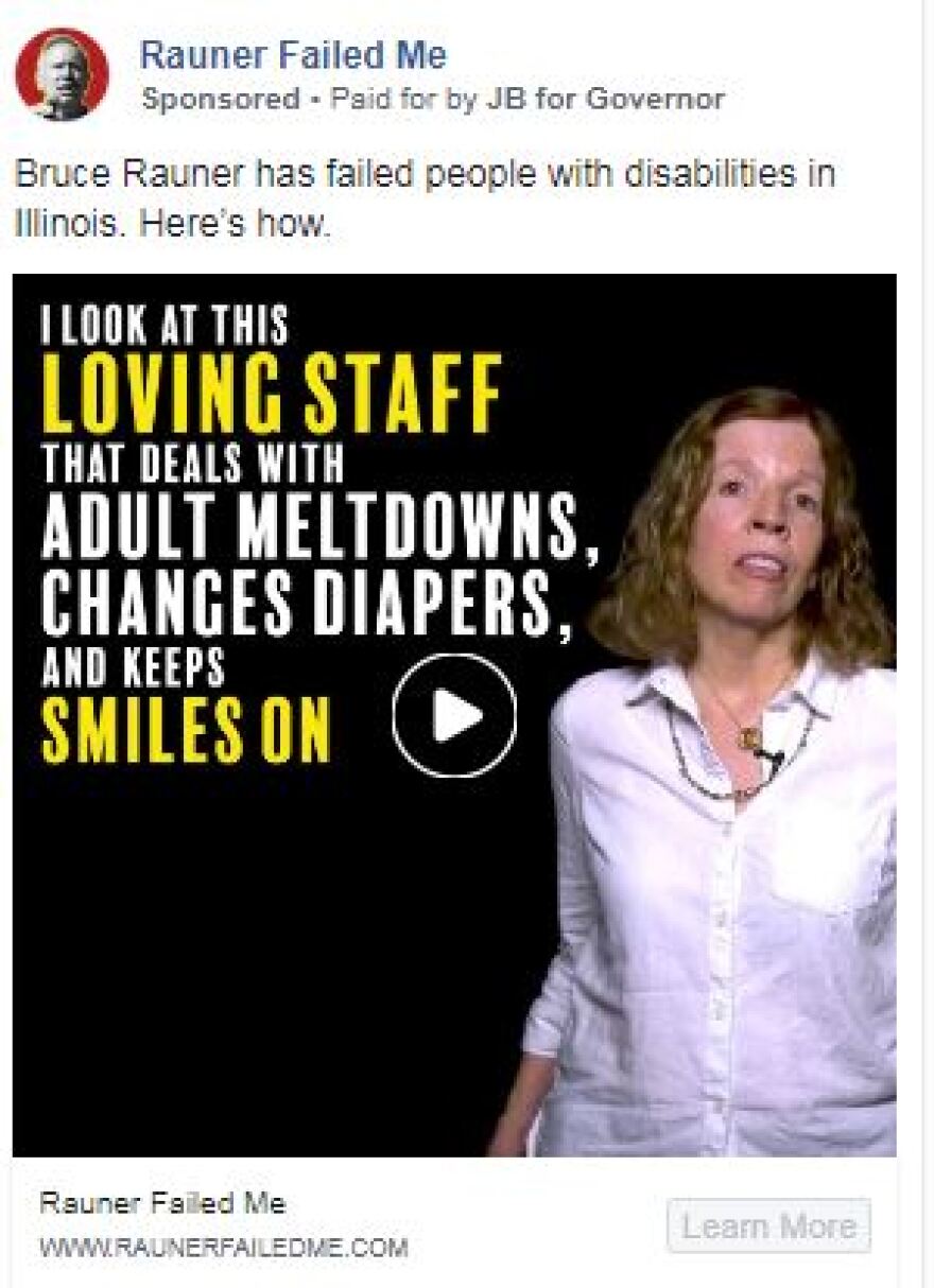 Pritzker's campaign has a multi-platform strategy. They like to keep it more positive on Pritzker's page and move negative ads to a page called "Rauner Failed Me."