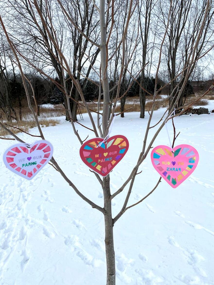 Rockford Park District doesn't want you to wear your heart on your sleeve. They want you to hang it on a tree! It's part of their 2021 Winter Flurry initiative called "We Love Our Parks." That's when kids (and their families and friends) create colorful stained-glass hearts and hang them on designated trees throughout the city.