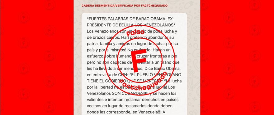 - Una cadena de WhatsApp afirma que en CNN el expresidente Barack Obama dijo que los venezolanos son “de poca lucha y brazos caídos”.